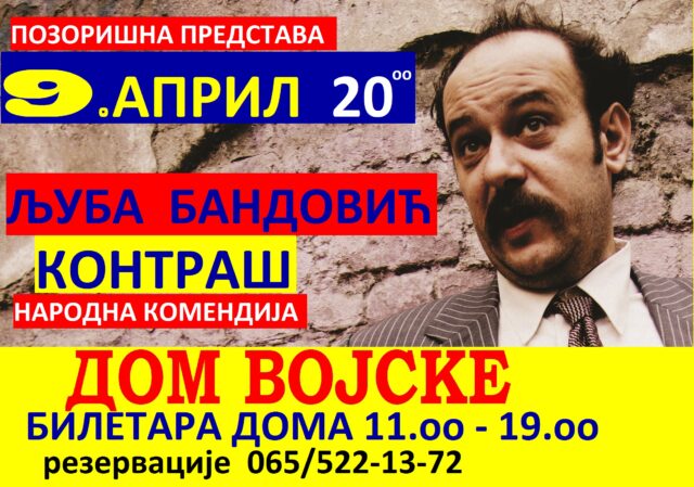 Narodska urnebesna komendija“KONTRAŠ“ 09.aprila od 20:00 u sali Doma Vojske Srbije.