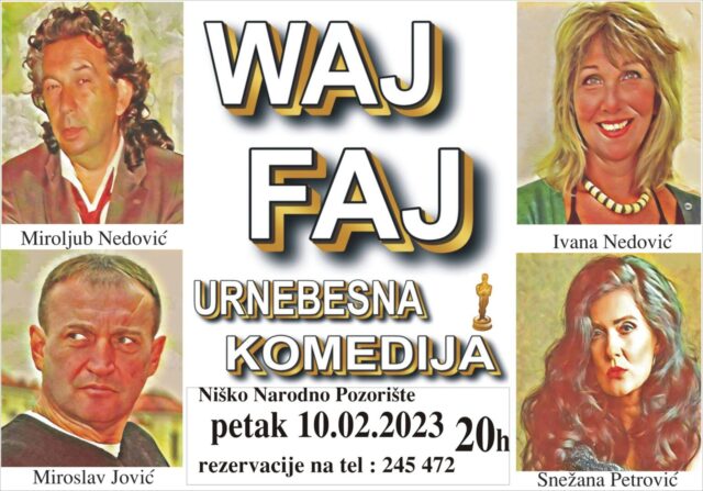Predstava „Waj Faj“ vraća se na scenu niškog Narodnog pozorišta, da ponovo do suza nasmeje Nišlije. Publika će imati priliku da pogleda ovu urnebesnu komediju 10. februara od 20 sati.