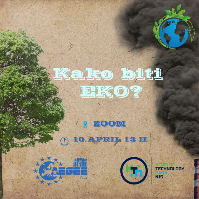 ,,AEGEE – Niš’’, filijala evropske omladinske i neprofitne organizacije ,,AEGEE’’, organizovaće 17. aprila 2021. godine događaj edukativnog karaktera pod nazivom ,,Kako biti EKO’’.