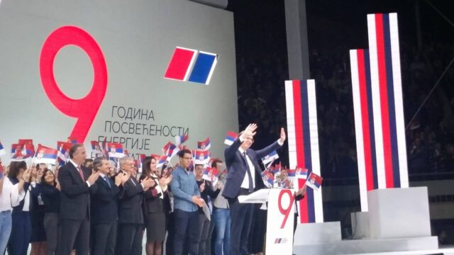 „Srbija je danas zemlja na evropskom putu, ali niko ne može da joj naredi da okrene leđa prijateljima i da im zabije nož u leđa. Srbija ima svoje ime i prezime, ima svoje ja, Srbija sme i da zagrmi i kada tiho govori, Srbija se danas čuje onako kako se nije čula u poslednjih 20 ili 30 godina“, rekao je Vučić pred prepunim tašmajdanskim stadionom, „podvlačeći crtu“ i učinak stranke od njenog osnivanja.