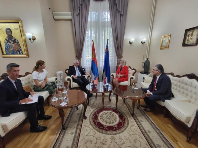 Američki ambasador Kristofer Hil danas boravi u Nišu, a tim povodom je organizovan prijem u Gradskoj kući, gde se sastao sa zamenicom gradonačelnice Dušicom Davidović.
