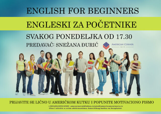 Kurs je namenjen odraslim početnicima, bez prethodnog poznavanja engleskog. „Engleski za početnike“ startuje 22. septembra u prostorijama Američkog kutka.