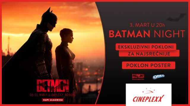 Jedan od najomiljenijih super heroja DC Univerzuma, vraća se na veliko platno Cineplexx Niš bioskopa i to na večeri posvećenoj ovom fenomenu! Batman night očekuje vas u četvrtak, 3. marta od 20 časova uz poklon originalni poster filma za sve fanove, ali i sjajne poklone iz filma za najsrećnije kao i poklone partnera striparnice Južni Darkwood. Ulaznice su u prodaji na blagajni Cineplexx Niš bioskopa i putem aplikacije CineplexxRS.