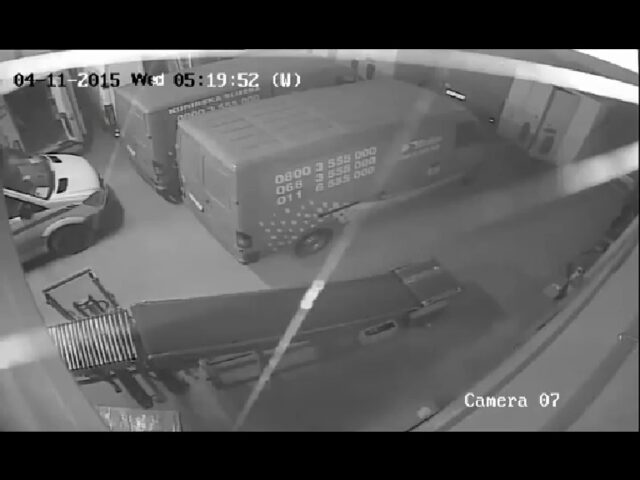 Unutrašnje kamere zabeležile su snimke na kojima se vide razbojnici kako otvaraju vrata kombi vozila, verovatno birajući koje je najpogodnije da bi se u njemu sakrili do dolaska radnika.