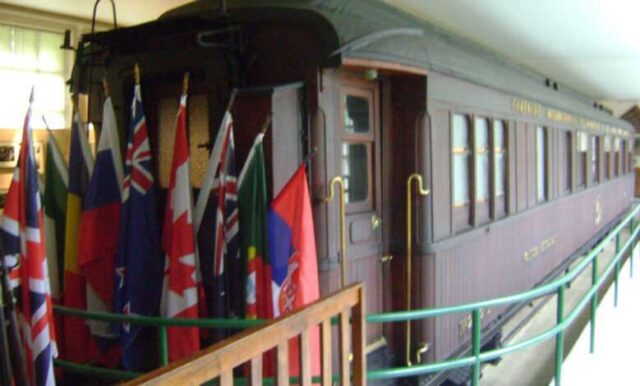 Bezuslovna kapitulacija, prema kojoj je Nemačka morala da napusti sve okupirane zemlje na zapadu i istoku, Alzas i Lorenu i levu obalu Rajne, potpisana je u železničkom vagonu u francuskom mestu Kompijenj, 11. novembra 1918. godine, u 11 časova pre podne. Kasnije, u znak sitne osvete, Hitler je naredio da Francuska potpiše kapitulaciju u junu 1940. godine u istom tom vagonu koji se čuva kao spomenik-muzej u Kompijenju. U Muzeju vagonu danas se nalaze zastave svih saveznika, među kojima je i naša.