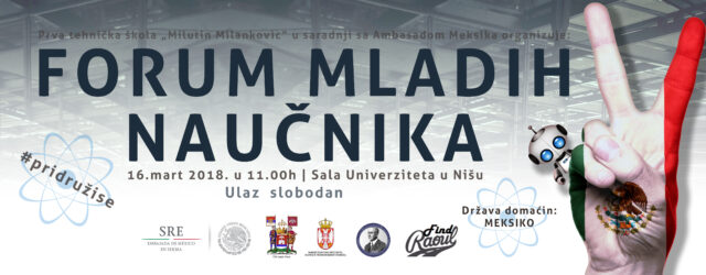 Niška Prva tehnička škola „Milutin Milanković“ uz podršku Ambasade Meksika i organizacije „Nađi Raula“ organizuje konferenciju „Forum mladih naučnika – pridruži se“. Cilj ovogodišnje konferencije je promocija mladih talenata, budućih naučnika, ali i ukazivanje na programe putem kojih mogu da odu u Meksiko, dodatno se edukuju, a kasnije stečeno znanje vrate u svoju matičnu zemlju – Srbiju.