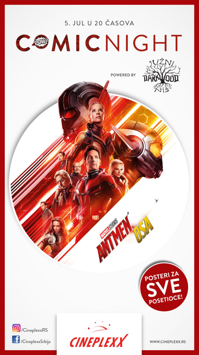 Cineplexx Niš tri nova filmska naslova i Comic night događaj uz film „Antmen i Osa” :