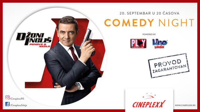 Ukoliko niste, upoznajte Džonija Ingliša u urnebesnom izdanju ovog četvrtka u bioskopu Cineplexx Niš od 20 časova! Veče puno smeha, kakvo samo Rouan Etkinson može da priredi očekuje vas na Comedy night događaju uz film “Džoni Ingliš – Ponovo u akciji”! Karte su od sutra u prodaji na blagajni bioskopa!