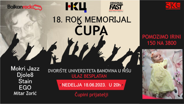 Osamnaesti po redu Čupin memorijal „Najvažnije je biti zdrav“ održava se u nedelju, 18. juna u dvorištu Univerziteta u Nišu (Banovini) i biće humanitarnog karaktera, za pomoć maloj Irini Trojanovski, kako bi pobedila u velikoj borbi za svoj prvi zagrljaj i dodir.