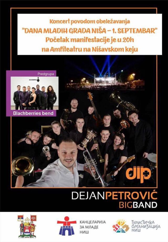 Mladi su budućnost Grada Niša i to Grad nastoji da pokazuje svakodnevno, kroz programe koje finansira i podržava, ali i kroz stvaranje uslova za rad, napredovanje, usavršavanje i lep i pristojan život u Nišu. Dan mladih Niša-1.septembar samo je još jedna prilika da pokažemo da Niš živi za mlade i sa mladima. Dešavanja na keju počeće u 21 sat, a kao predgrupa Big benda Dejana Petrovića nastupiće niški sastav Blekberis. Pokrovitelj je Grad Niš-Kancelarija za mlade.