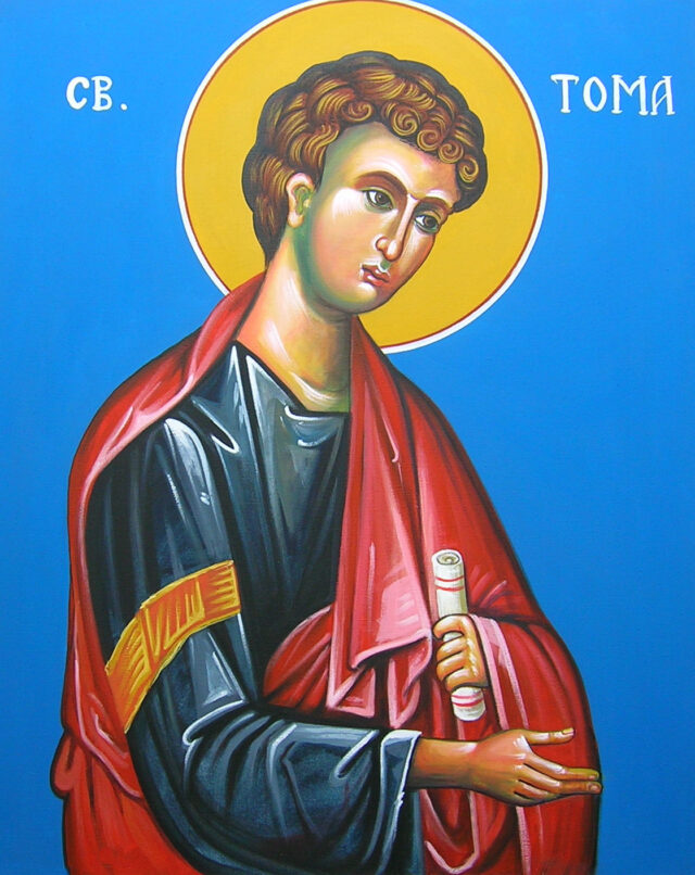 Sveti Toma rođen je u galilejskom gradu Paneade. Jedan je od dvanaestorice apostola i jedini među njima koji nije krio svoju sumnju u Vaskrsenje Hristovo.