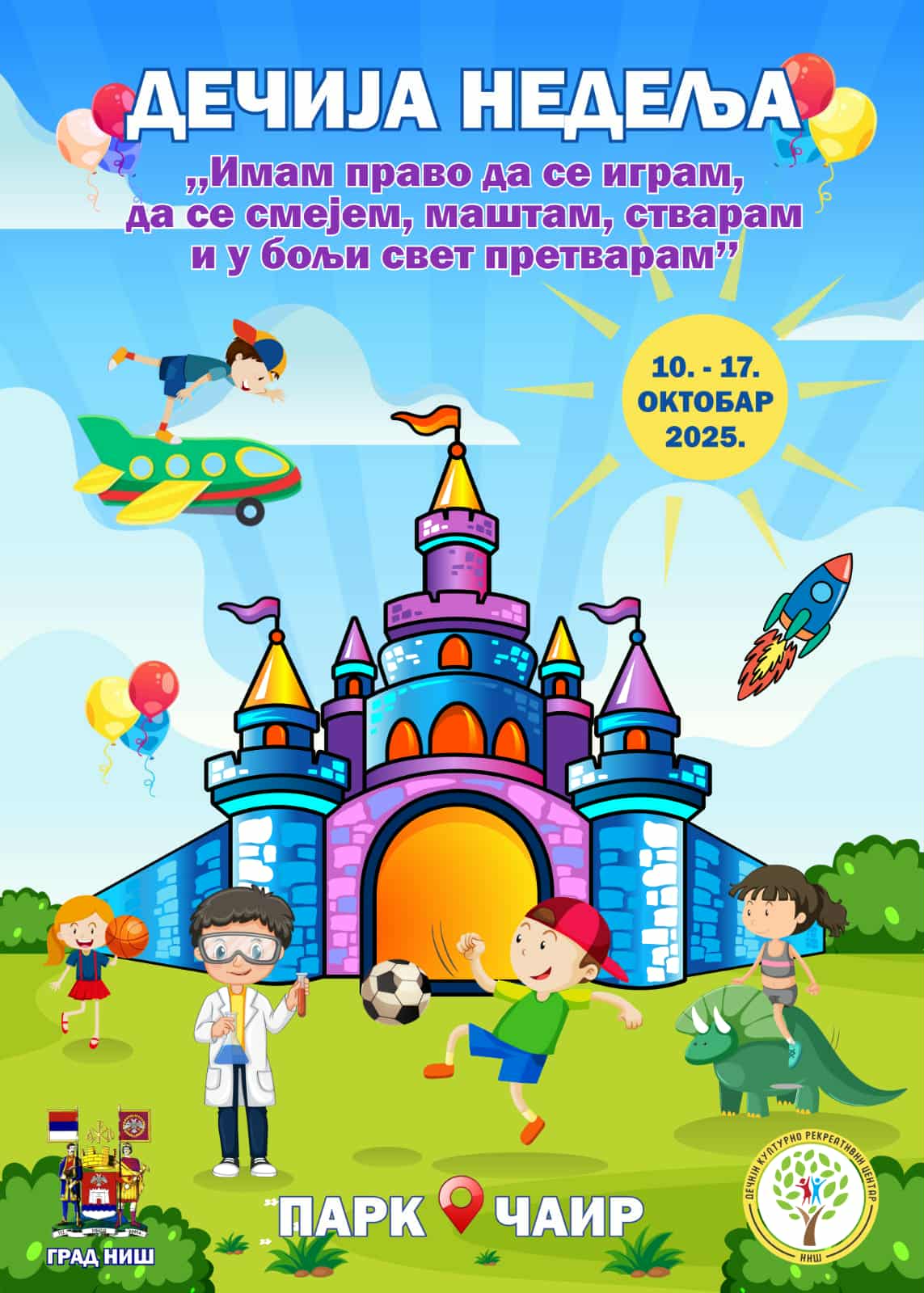 Povodom obeležavanja Dečije nedelje, u periodu od 10. do 17. oktobra, u parku Čair u Nišu biće održana jedinstvena manifestacija Vilarijum – čarobni grad za decu i mlade. Cilj manifestacije je da se najmlađima pruži prostor za igru, kreativno izražavanje i stvaranje nezaboravnih uspomena.