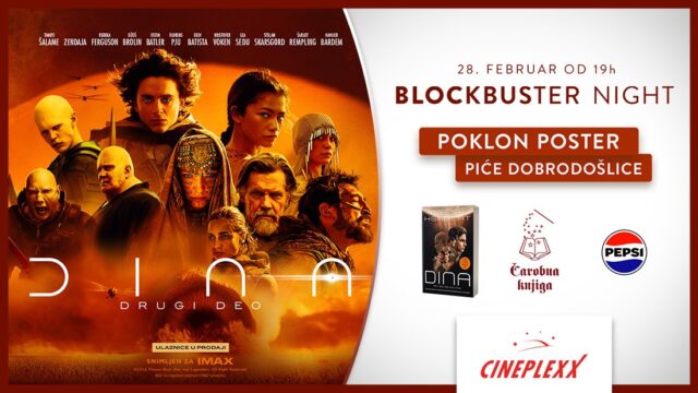 Sve posetioce na Blockbuster Night događaju očekuje piće dobrodošlice i originalni poklon posteri iz filma. Najsrećniji posetioci dobiće i knjigu „Dina 1“ autora Frenka Herberta.