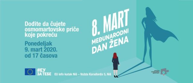 Povodom Međunarodnog dana žena, EU info kutak u Nišu organizuje diskusiju „One koje pokreću”, koja će biti održana u ponedeljak 9. marta od 17 sati na adresi Vožda Karađorđa broj 5.
