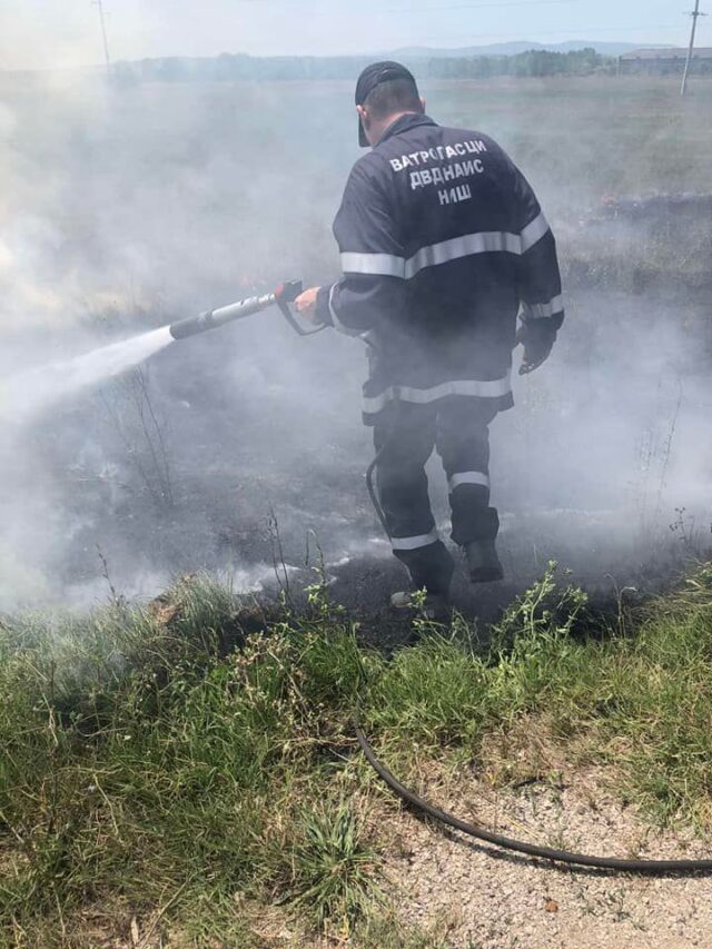 Vatrogasci Dobrovoljnog vatrogasnog društva „Nais“ ugasili su zapaljenu travu u industrijskoj zoni grada, na čemu su radili u tandemu sa profesionalnim vatrogascima.