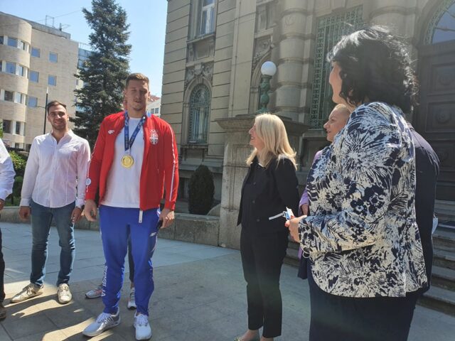 Gradonačelnica Niša Dragana Sotirovski primila je osvajača zlatne medalje na Olimpijskim igrama u Japanu Savu Ranđelovića, vaterpolistu i našeg Nišliju.