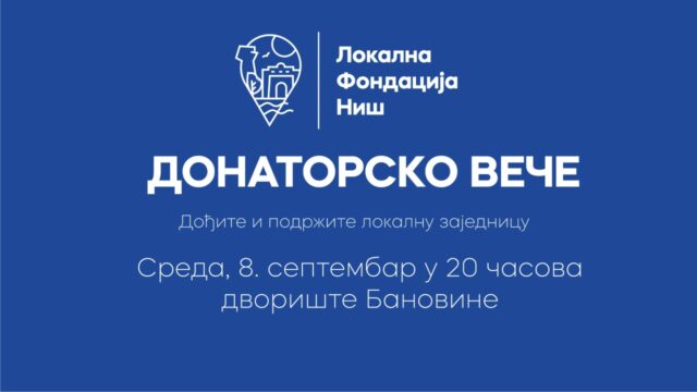Sa idejom da se zahvali dosadašnjim donatorima, predstavi postignute rezultate i prikupi nova sredstva za realizaciju kreativnih ideja Nišlija, Lokalna fondacija Niš (LFN) organizuje prvo Donatorsko veče. Događaj je zakazan za sredu, 8. septembar od 20 sati u dvorištu Banovine u Nišu.
