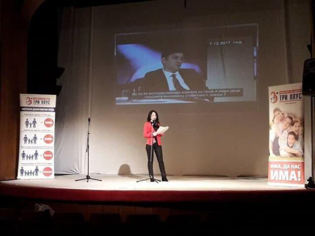 Pokret Tri plus predstavio je svoje projekte “Cena minus za 3+”, ponosnu karticu koja je zaživela u Čačku, Lučanima i Guči, Užicu, Čajetini, Šapcu, a priključuje se i niz mnogih lokalnih samouprava, “Održiv demografski fond”, projekat u okviru koga su formulisani predlozi ovog udruženja od kojih su prva dva za veći roditeljski dodatak za prvo i drugo dete u potpunosti usvojena. Ostale predloge, predsednik Pokreta za decu Tri plus, Vladica Gavrilović prezentovao je prisutnima predočene u vidu MERA SOCIJALNE PODRŠKE I POGODNOSTI PORODICAMA SA TROJE I VIŠE DECE koje bi se većim delom sprovodile preko lokalnih samouprava,kao i izmenama poreskih zakona. Mere koje su predložene: