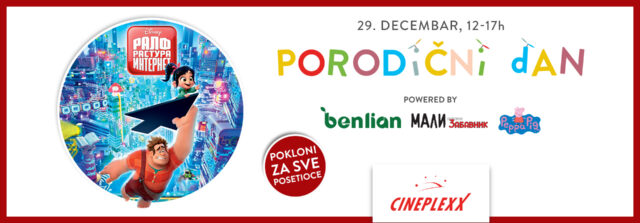 Iz studija Dizni i mašte reditelja Fila Džonstona i Riča Mura stiže sjajna animirana avantura! Razbijač Ralf u novoj misiji spašavanja igrice očekuje vas na Porodičnom danu u bioskopu Cineplexx Niš u subotu 29. decembra od 12 do 17 časova! Uživajte u specijalnom programu inspirisanom glavnim junakom i poklonima* za sve mališane! Karte su u prodaji na blagajni bioskopa.