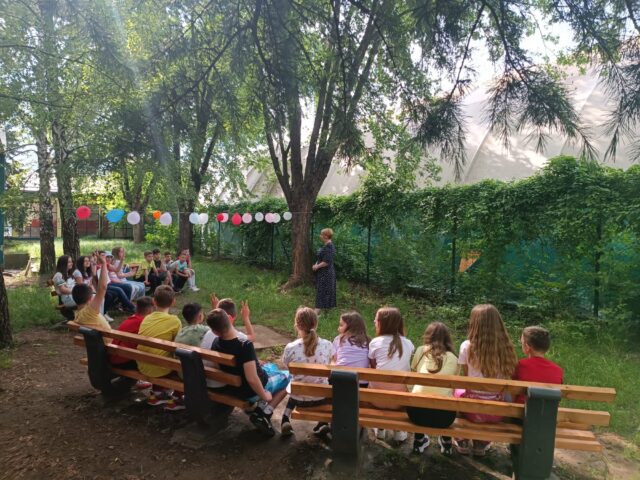 Nastavnici su nabavili klupe koje su postavljene u dvorištu škole i uredili prostor tako da boravak napolju bude prijatan i bezbedan. Ovo je sjajan način da se učenicima omogući da više budu u dodiru sa prirodom i uče van učionice. Osim toga, ovo mesto dostupno je svim građanima lokalne zajednice koji i sada provode vreme u školskom dvorištu.