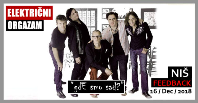 Jedna od najpoznatijih jugoslovenskih rok grupa „Električni Orgazam“ najavila je koncert u Nišu u okviru turneje „Gde smo sad?“. Legendarni rokeri će u okviru pomenute turneje održati četiri koncerta na jugu Srbije,i to: 15. Decembar – Pirot ( klub Tvrđava) 16. Decembar – Niš (Feedback) 21. Decembar – Vranje (Darkwood) 22. Decembar – Leskovac (Tesla bar) Bend će na ovoj mini turneji publici predstaviti svoj dvanaesti studijski album, pod nazivom “Gde smo sad?“, koji je nedavno objavljen u izdanju Mascoma.