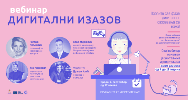 Serijal vebinara „Digitalni imunitet – od digitalne cucle do digitalnog buntovnika” organizuje EU info centar u saradnji sa Ministarstvom kulture i informisanja Republike Srbije i EU projektom „Podrška medijskim reformama“.