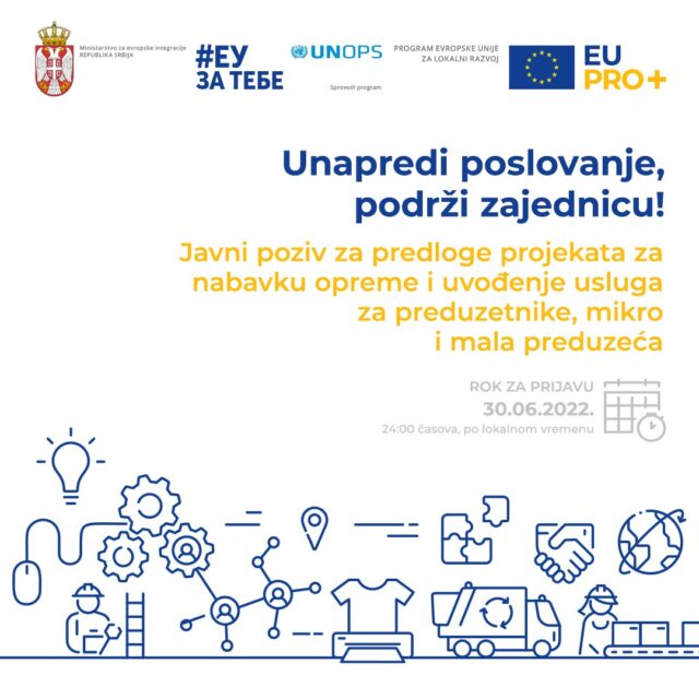 Više informacija o uslovima poziva, kriterijumima za izbor korisnika, načinu konkurisanja kao i dokumentacija za prijavljivanje dostupni su na internet stranici EU PRO Plus Programa: Javni poziv za predloge projekata za nabavku opreme i uvođenje usluga za preduzetnike, mikro i mala preduzeća.
