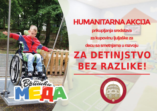 „Za detinjstvo bez razlike“ naziv je humanitarnog projekta pokrenutog sa ciljem prikupljanja sredstava za kupovinu ljuljaški za decu sa smetnjama u razvoju. Ljuljaške će biti postavljene na javnim površinama u gradu kako bi deca sa smetnjama u razvoju imala jednake mogućnosti da se priključe igri i ravnopravno uživaju u druženju sa svojim vršnjacima.