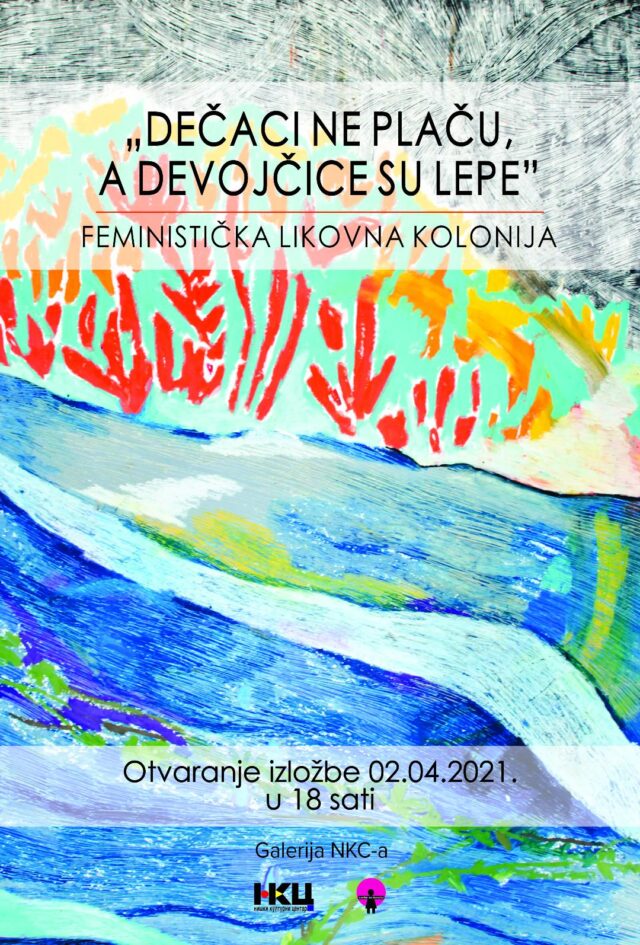 Pozivamo vas na otvaranje izložbe Feminističke kolonije pod nazivom „Dečaci ne plaču,a devojčice su lepe“, u petak 2. aprila 2021. godine, u Galeriji Niškog kulturnog centra, u 18 sati.