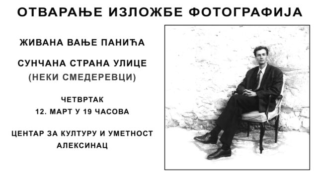 Osamnaesta samostalna izložba fotografija „Sunčana strana ulice (Neki smederevci)” autora Živana Vanje Panića biće održana 12. marta u Centru za kulturu i umetnost u Aleksincu od 19 časova.