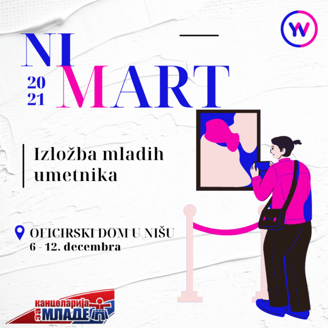 Kancelarija za mlade Grada Niša i Youth Vibes organizuju izložbu mladih i neafirmisanih autora, pod nazivom „Nimart“. Izložba će biti otvorena od 6. do 12. decembra.