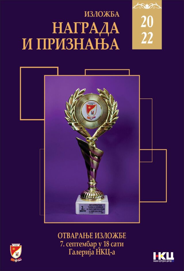 Niški kulturni centar u saradnji sa Udruženjem Makedonaca Vardar Niš organizuje izložbu nagrada i priznanja, u sredu 7.septembra 2022. u Galeriji Niškogf kulturnog cnetra, sa početkom u 18 sati.