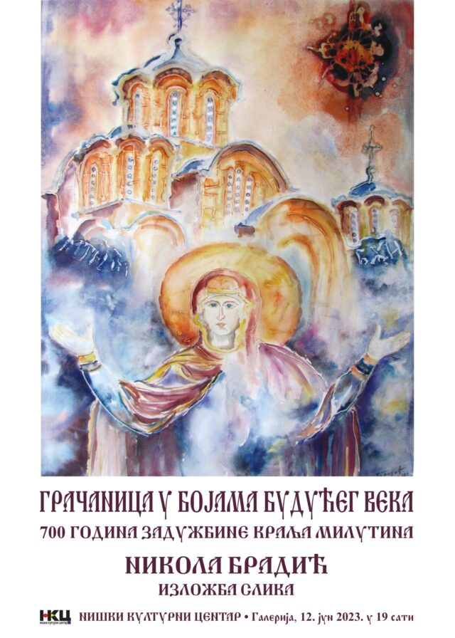 Izložba slika Nikole Bradića pod nazivom „Gračanica u bojama budućeg veka“ biće održana u Galeriji Niškog kulturnog centra u ponedeljak 12. jun 2023. u 19 sati