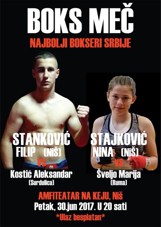 U sredu 28. juna sa početkom u 11:30h održati javni trening učesnika BOKS SPEKTAKLA NAISSUS BOXING NIGHT 2017. Mesto održavanja treninga je plato ispred Dečijeg centra u Čairu. Najbolji bokseri Srbije stižu u Niš.