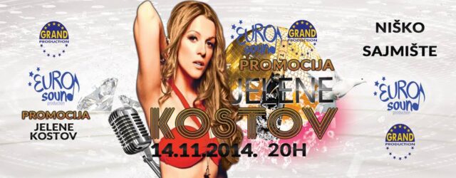 Večeras od 20h na Niškom sajmištu u organizaciji Euro Sond održaće koncert Jelena Kostov . Pored zvezde večeri nastupiće još i Šarmeri 018, Bojan br.6, Mapet show band i Bane Jovanovic . Karte po ceni od 400,00 dinara možete kupiti u : Happy House , Music house , Turističkoj agenciji EPIC , Knjizara Indigo i Turisticka agencija clock travel . Organizatori Euro Sond poručuju noć za pamćene i pozivaju sve Nišlije na večerašnji koncert .