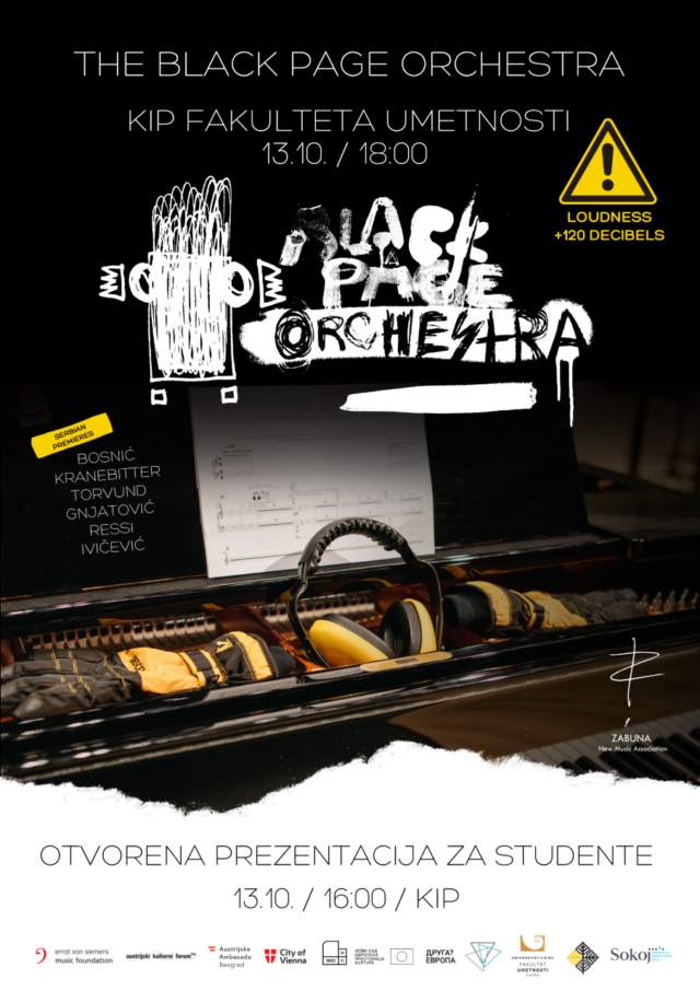 Nesvakidašnji koncert najavljen je za 13. oktobar u Nišu u Koncertno-izložbenom prostoru Fakulteta umetnosti. Bečki ansambl doneće spajanje klasičnog instrumentalnog sastava sa snažnom energijom uz podršku elektronske muzike i video projekcija. Sve kompozicije na programu biće srpske premijere i dela su kompozitorki i kompozitora: Matijasa Kranebitera (Austrija), Ojvinda Torvunda (Norveška), Mirele Ivičević (Hrvatska), Kristofera Resija (Austrija), Ane Gnjatović (Srbija) i Maje Bosnić (Srbija). Pored poznatog nastupa u podmoričkoj bazi na ostrvu Vis, gde su izveli Štokhauzenovu kompoziciju „Mikrofonie I“, Black Page Orchestra u svom repertoaru ima kompozicije čuvenih stvaraoca 20. veka, kao i najaktuelnija dela naručena posebno za ovaj ansambl tokom prethodnih nekoliko godina. Do sada su nastupali na preko stotinu festivala širom sveta, a osim u Nišu, ovog oktobra će održati koncerte i u Beogradu i Novom Sadu.