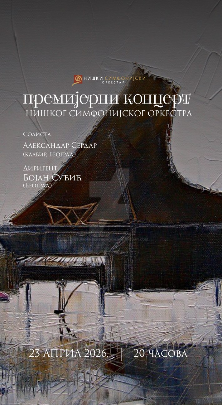 Niški simfonijski orkestar održaće premijerni koncert u četvrtak, 23. aprila, sa početkom u 20 časova. Pod dirigentskom palicom maestra Bojana Suđića, uz solistu, istaknutog pijanistu Aleksandra Serdara, publika će imati priliku da uživa u vrhunskom umetničkom događaju u koncertnoj sali orkestra.