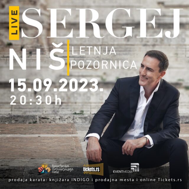 Popularni pevač i autor Sergej Ćetković će održati koncert u Nišu 15. septembra 2023. godine na Letnjoj pozornici sa početkom od 20:30 sati kada će podsetiti svoju vernu publiku na najveće hitove.