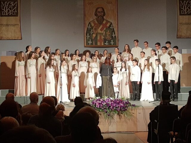 Prvi deo muzičke večeri, obeležio je nastup malog hora „Branko“, pod sigurnom dirigenstskom palicom Jovane Mikić. Njihovo, sada već iskusno izvođenje duhovnih i svetovnih kompozicija, izazvalo je ovacije prisutne publike u Svetosavskom domu,