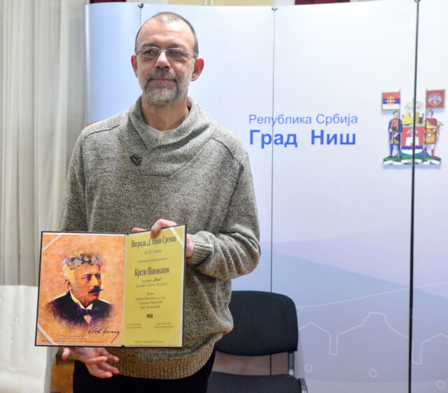 Na fotografiji: Krsta Popovski, dobitnik nagrade „Stevan Sremac“ za 2017. godinu (foto: NKC)