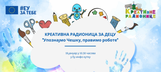 EU info kutak u Nišu nastavlja i u 2020. godini sa organizovanjem kreativnih radionica za najmlađe sugrađane. U subotu, 18. januara od 10:30h, sa deca uzrasta od šest do dvanaest godina upoznaće Češku i praviti robote.