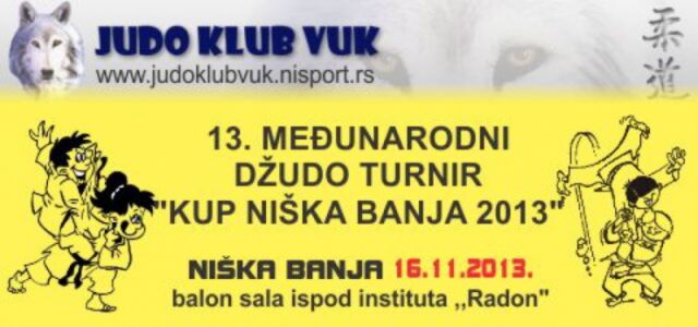 13. Otvoreni Internacionalni Judo turnir „KUP NIŠKA BANJA 2013“ održaće se u subotu 16. novembra 2013. godine, od 11 sati u balon hali u Niškoj Banji.