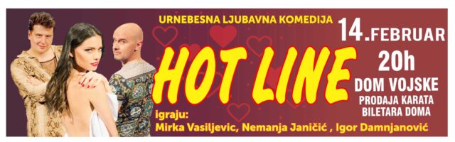 Na Dan zaljubljenih, u petak 14. februara u Sali Doma Vojske Srbije u Nišu sa početkom u 20 sati Nišlije očekuje urnebesna ljubavna komedija „Hot line“. Glavne uloge tumače Mirka Vasiljević, Nemanja Janičić i Igor Damnjanović.