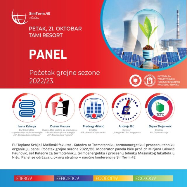 „U zvaničnom, naučnom delu konferencije, o najznačajnijim dostignućima i gorućim problemima u svetlu energetske krize i energetske tranzicije, govoriće eminentni stručnjaci iz zemlje i inostranstva. Teme konferencije povezuju 4 neraskidivo povezane oblasti nauke – energiju, efikasnost. ekologiju i ekonomiju. Ono što je sa aspekta društveno gorućih pitanja od velikog značaja jeste i početak grejne sezone, čemu će biti posvećen poslednji dana rada konferencije. Panel sa predstavnicima svih najvećih toplana u Srbiji biće održan u petak, 21.10.2022“ – nastavlja profesorka Laković. Paneli koji su i do sada organizovani na ovaj način pokazali su se odličnim alatom za postizanje stabilnijeg snabdevanja toplotnom energijom, ali i uspostavljanje komunikacije izmešu potrošača i proizvođača toplotne enrgije.