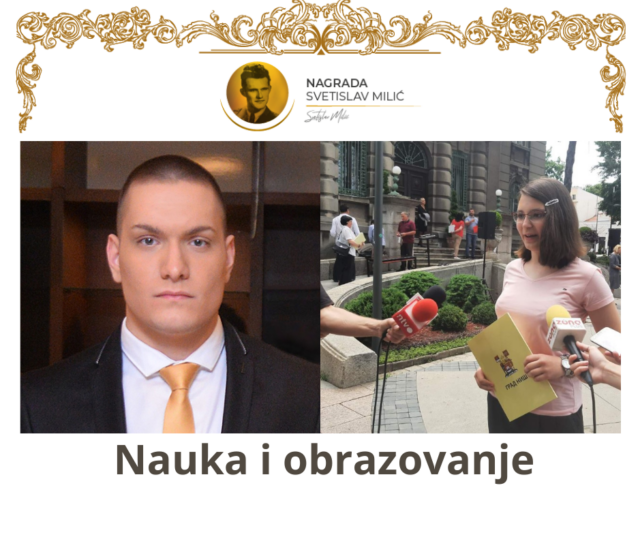 Komisija za dodelu Nagrada „Svetislav Milić – mladima od srca“, donela je jednoglasnu odluku da nagradu u oblasti nauka i obrazovanje podele Teodora Obradović, učenica Gimnazije „Bora Stanković“ u Nišu i Milijan Bačević sa Medicinskog fakulteta, Univerziteta u Nišu.