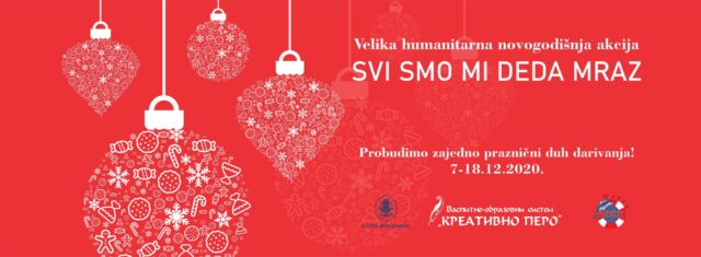 VOS Kreativno pero, u duhu predstojećih praznika i u nastojanju da prevaziđe izazove koje nam trenutna epidemiološka situacija postavlja, 7. decembra tradicionalno je pokrenuo veliku humanitarnu akciju Svi smo mi Deda Mraz. Akcija traje do 18. decembra 2020. godine.