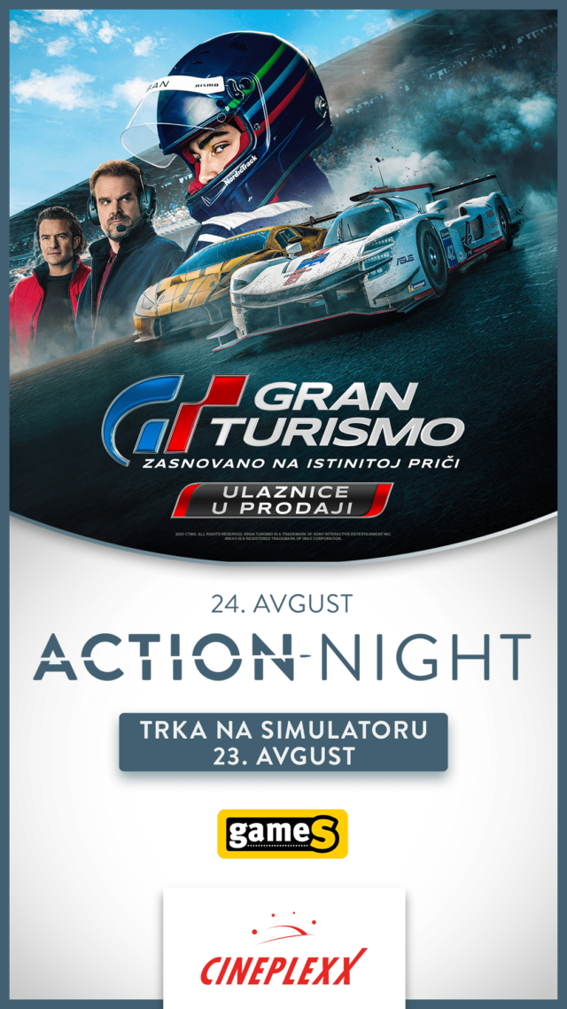 Pridružite nam se na još jednom sjajnom Action night događaju i uživajte u priči ispunjenoj adrenalinom koja nam, sa najpoznatijih trkačkih staza na svetu, stiže na veliko platno Cineplexx bioskopa. Zaokružite 24. avgust u svojim kalendarima i od 20 časova se priključite brzoj vožnji koja donosi ostvarenja najvećih snova.