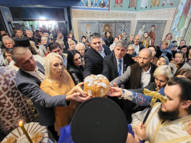 U crkvi Svete Petke obavljeno je rezanje Slavskog kolača povodom krsne slave Prepodobne mati Paraskeva – Sveta Petka koju slavi Srpska napredna stranka.