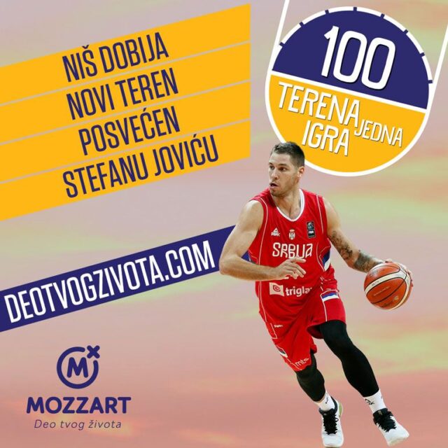 Mozzartov sportski karavan nastavlja svoju akciju „100 terena za jednu igru” u Nišu, u kom će obnovljeni košarkaški teren u utorak 7. avgusta od 18 časova, svečano otvoriti košarkaš Stefan Jović, koji trenutno nastupa za Bajern iz Minhena.