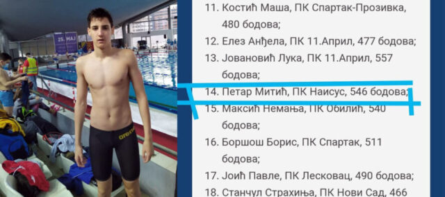 Mladi niški plivač Petar Mitić, član Plivačkog kluba Naisus dobio je poziv nacionalnog selektora Plivačkog saveza Srbije, Igora Beretića za učešće na razvojnom kampu Plivačkog saveza Srbije koji će se u drugoj nedelji aprila održati u Košutnjaku u Beogradu.
